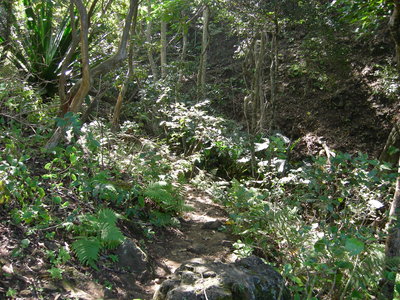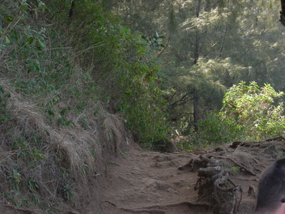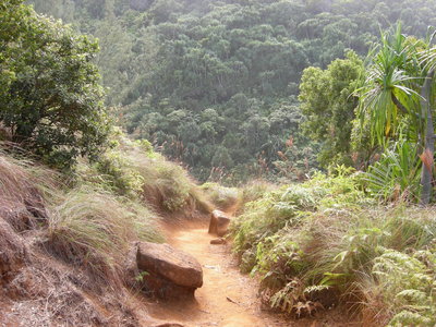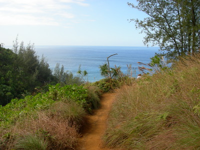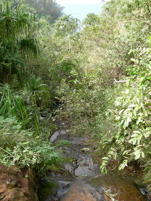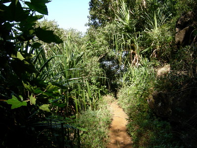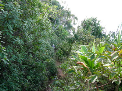 after Hanakapi'ai, the trail is narrower and more overgrown